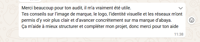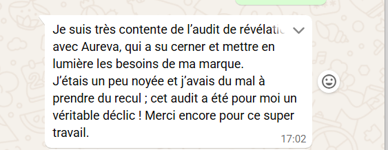 L’audit lui a permis de prendre du recul et d’y voir plus clair . Apres des mois sans réussir a structurer ses offres , elle a enfin réussi a créer des offres qui la différencie.